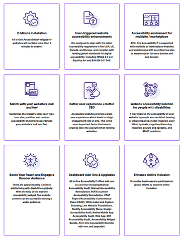 Our all in one solution is an AI based accessibility tool that helps organizations to enhance the usability of their websites for visitors with handicapped accessibility issues.